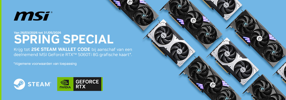 Krijg tot €25 Steam Wallet Code bij aanschaf van een deelnemend MSI GeForce RTX 5060Ti 8G grafische kaart!