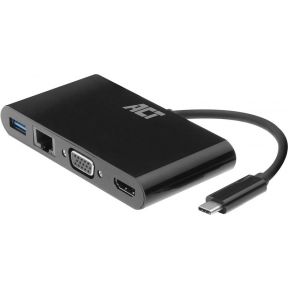 ACT USB-C naar HDMI of VGA female multiport adapter, ethernet en 1x USB-A