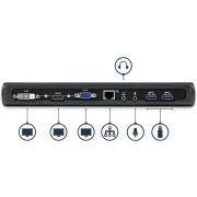 Dit USB 3.0 docking station combineert drie USB 3.0 poorten, koptelefoon en microfoon audioconnectors en een gigabit Ethernet RJ45 poort tot één dock voor maximale productiviteit.