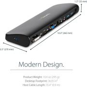 Dit USB 3.0 docking station combineert drie USB 3.0 poorten, koptelefoon en microfoon audioconnectors en een gigabit Ethernet RJ45 poort tot één dock voor maximale productiviteit.